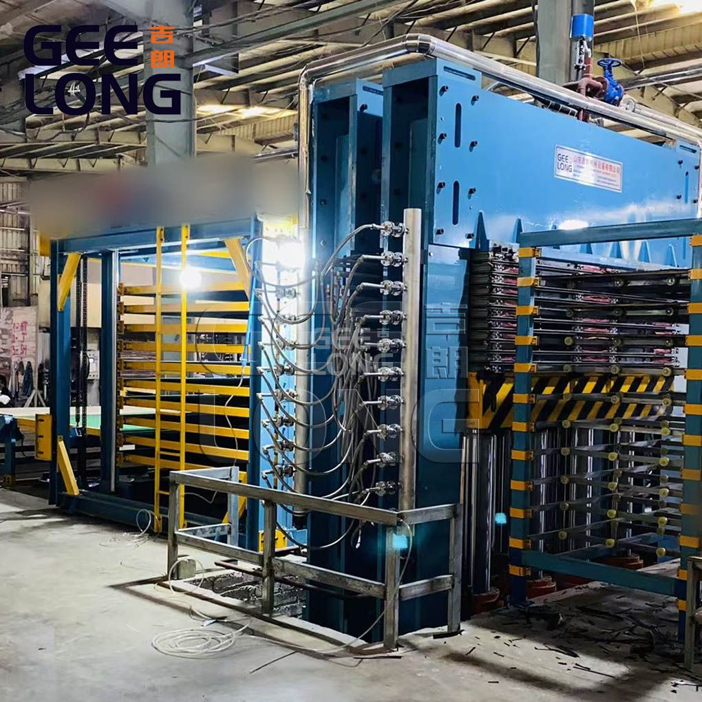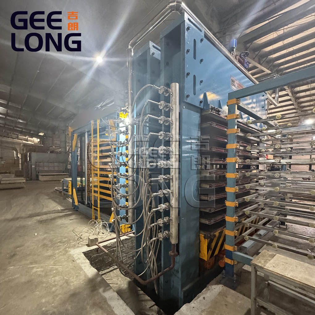 La machine installée au Vietnam comprend un convoyeur de pré-pose, une presse à chaud pour contreplaqué à 10 travées, un système de nettoyage d'air pour chaque couche, une presse à chaud de 1200 tonnes avec plaques en acier inoxydable et coussins amortisseurs, un poussoir automatique de panneaux, un système de refroidissement et un élévateur électrique pour l'empilage du contreplaqué filmé. Geelong propose également des solutions plus automatisées pour cette ligne, spécialement conçues pour le marché européen, réduisant la main-d'œuvre et optimisant le processus.